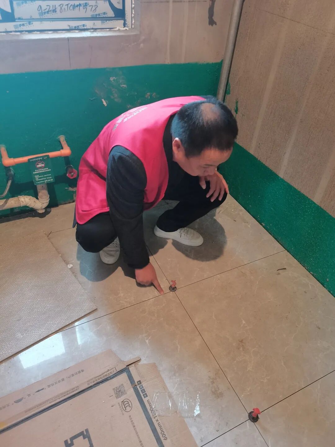 巡查過程中不放過每一個小細節(jié),確保達到瓷磚表面平整垂直,接縫平直,縫寬均勻,如有發(fā)現(xiàn)空鼓當場畫出,要求整改,整改完成后發(fā)到群里。
