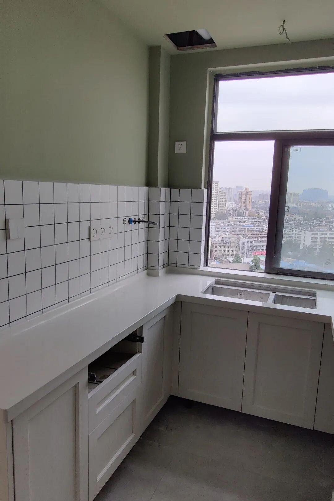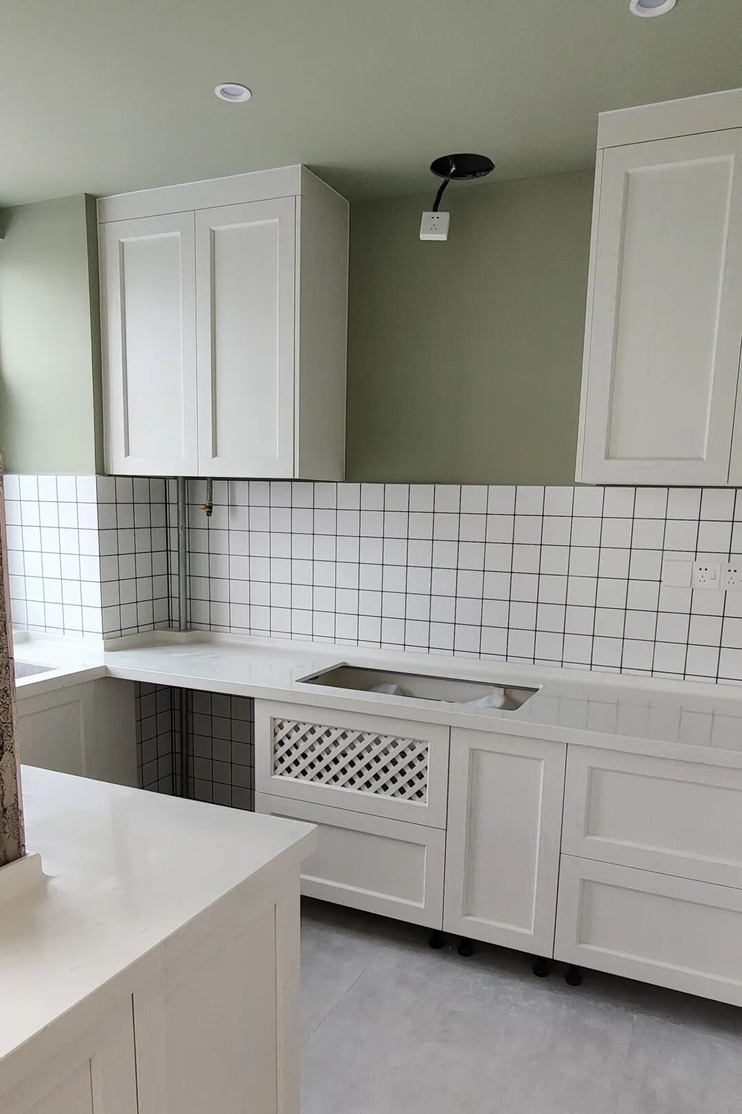 現(xiàn)場環(huán)境整潔,墻磚縫隙均勻。吊頂表面平整,板接處沒有裂縫,接駁位處理順暢,沒有錯位或變形的情況。墻面乳膠漆表面平整、反光均勻,無空鼓、起泡、開裂現(xiàn)象。