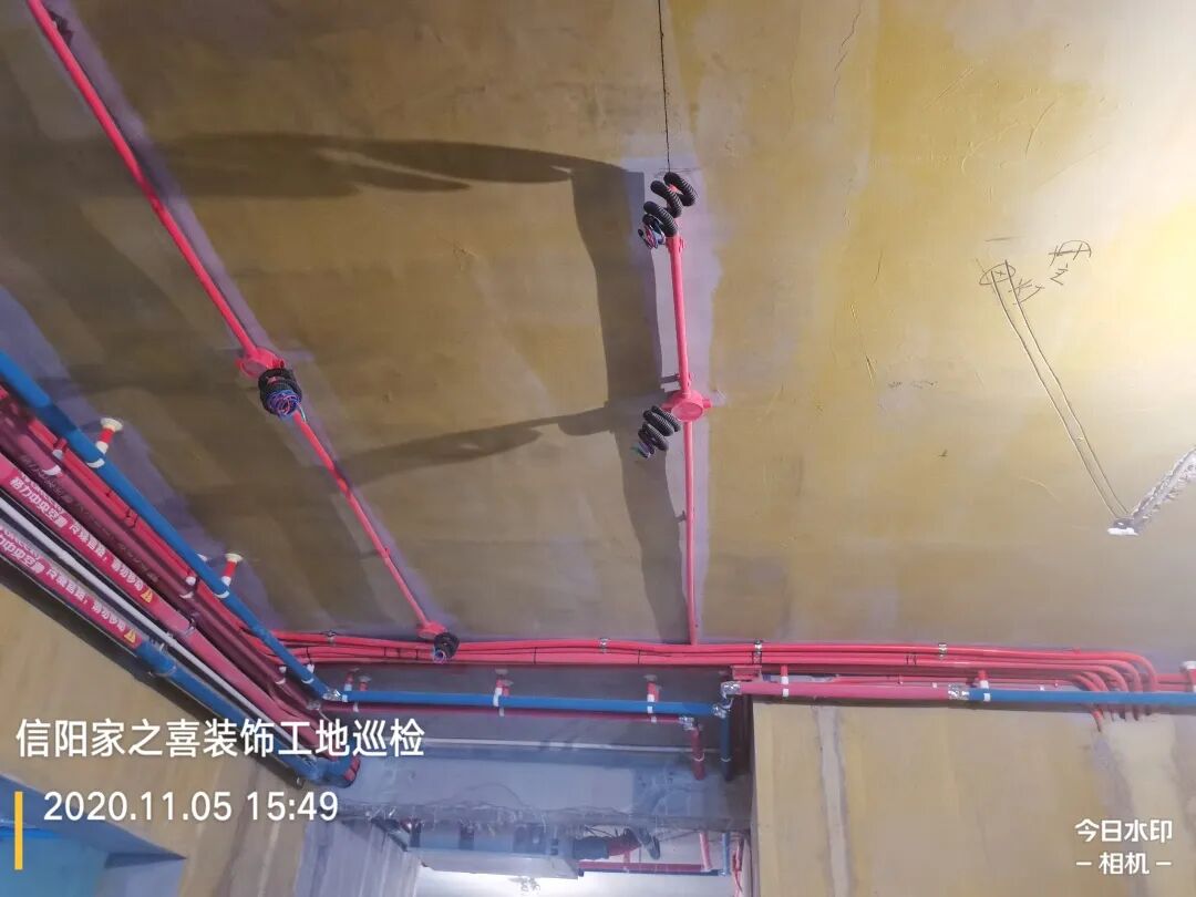 這是一套無主燈設計風格,隱蔽工程待驗收,現(xiàn)場環(huán)境整潔,施工保護到位,水電鋪設按標準施工,線管橫平豎直,單空間單回路,墻體墻固無掉粉現(xiàn)象。