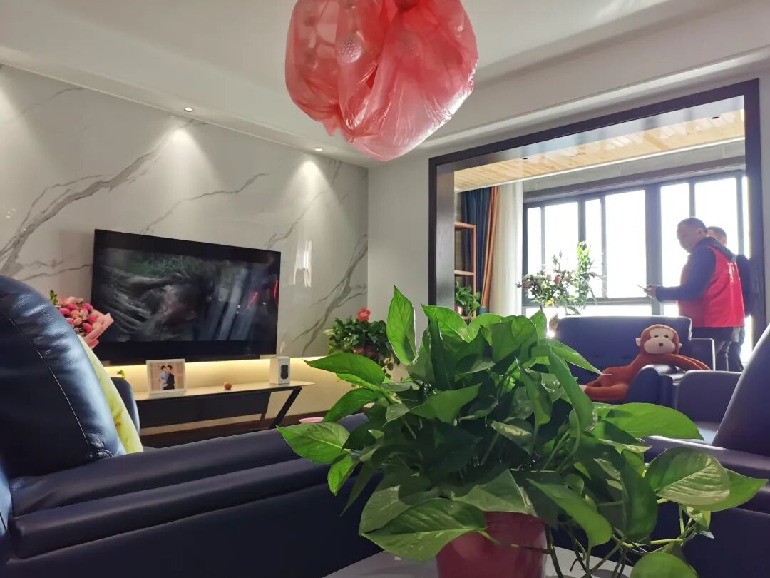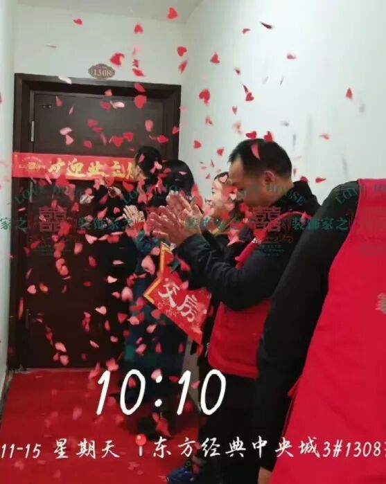 竣工儀式上,家之喜團隊帶著定制的彩幅及美好的祝福,與劉先生一家共同見證新家落成。